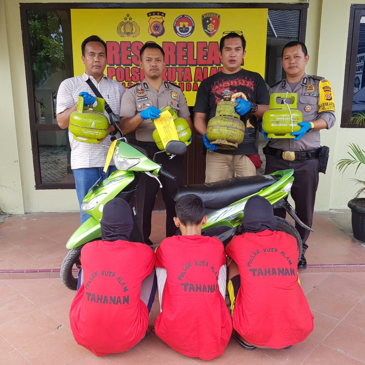 Dimana, jajaran Kepolisian Sektor Kuta Alam Polresta Banda Aceh terpaksa mengamankan tiga tersangka tersebut karena terlibat pencurian 14 buah tabung gas 3 kg di Gampong Laksana, Kecamatan Kuta Alam, Banda Aceh, Jumat 14 Februari 2020 lalu.