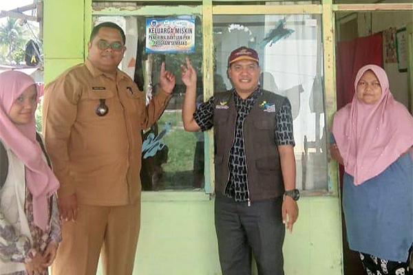 halaman7.com – Langsa: Keuchik Gampong Baro, Kecamatan Langsa Lama, Wahyu Sadli, melakukan penempelan stiker di rumah warganya yang menerima bantuan program keluarga harapan (PKH).