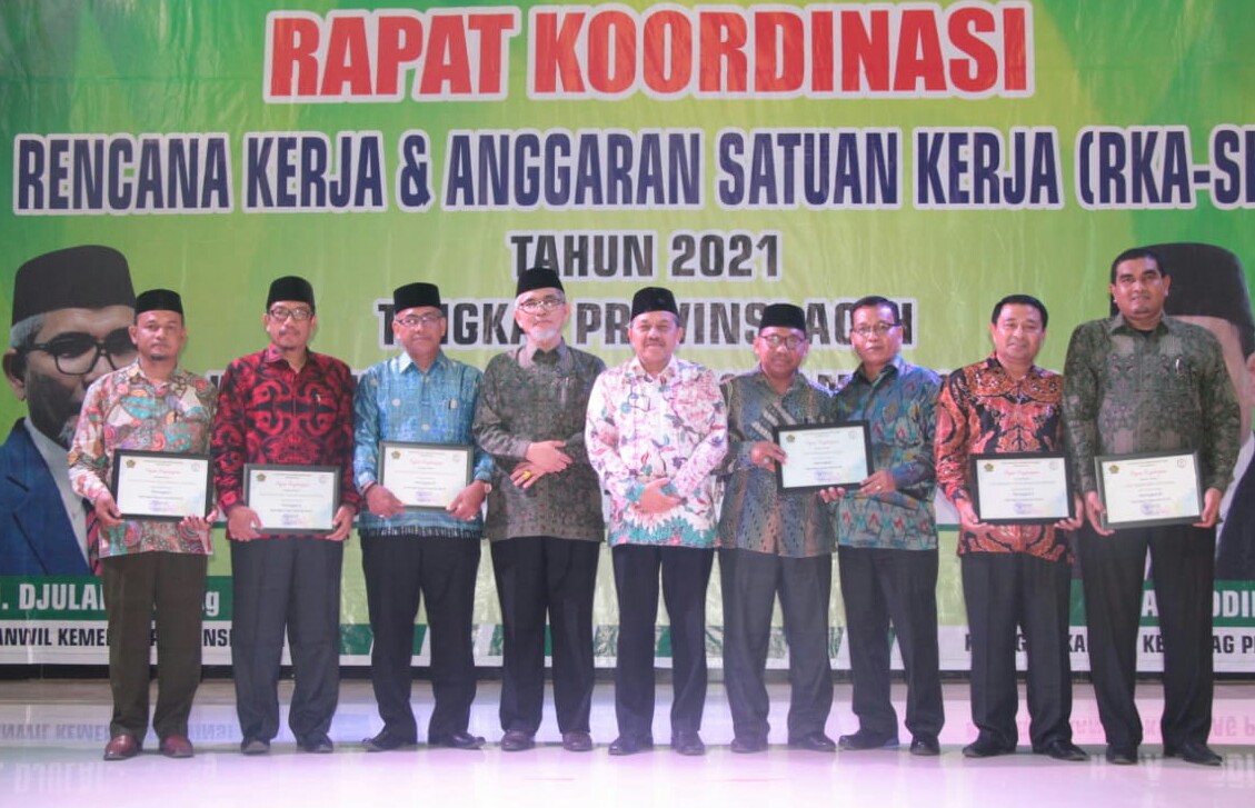 Selain membahas tentang penyusunan dan rencana kerja anggaran, dalam rapat tersebut Kanwil Kemenag Aceh juga memberikan penghargaan kepada sejumlah saturan kerja (Satker) terbaik dan juga pelantikan kelompok kerja perencanaan Kemenag Aceh.