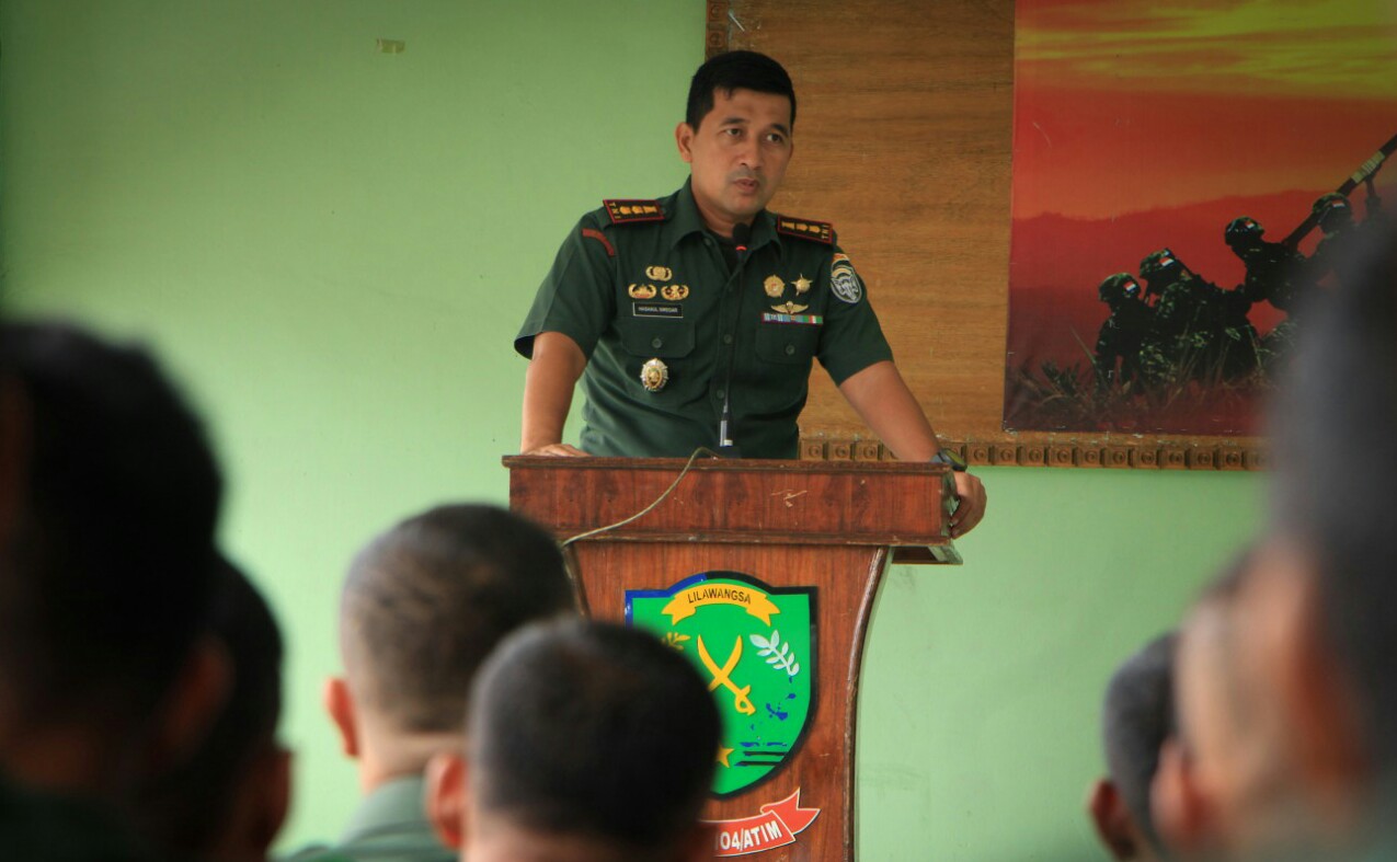 Dandim 0104/Atim Letkol Czi Hasanul Arifin Siregar SSos MTr (Han) menyampaikan perlunya para prajurit untuk mengikuti kegiatan sosialisasi ini agar tidak berbuat yang salah serta mematuhi segala peraturan yang berlaku berdasarkan Sapta Marga, Sumpah Prajurit dan Delapan Wajib TNI.