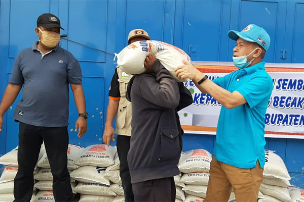 Semua tukang becak di Aceh Tamiang mendapat jatah satu zak beras seberat ukuran 15 kilogram yang dibeli dari sumbangan Tambahan Penghasilan Pegawai (TPP) ASN Aceh Tamiang yang terkumpul pada Maret sebesar Rp145 juta juga sumbangan CPNS tahun 2018.