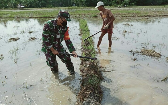 “Dengan begitu musim tanam dapat dimulai tepat pada waktu yang direncanakan,” ujar Sertu Ronal Manurung anggota Koramil Kejuruan Muda, Kodim Aceh Tamiang disela sela membantu Pak Anto salah satu anggota Kelompok Tani “Sinar Jaya ” membuat pematang sawah di Desa Tanjung Mancang, Kejuruan Muda, Rabu 27 Mei 2020 lalu.