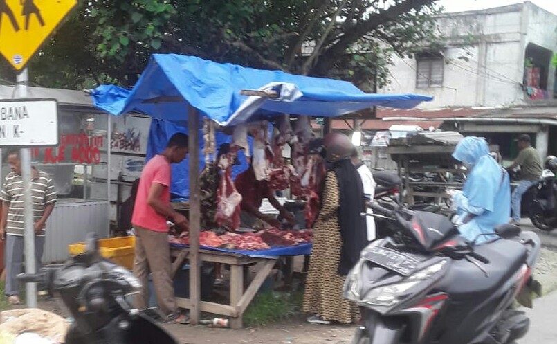 Juga ada yang membuka lapak daging di seputaran Lorong Utama dan juga kawasan persimpangan jalan masuk  Kampung Paya Bujok Tunong.