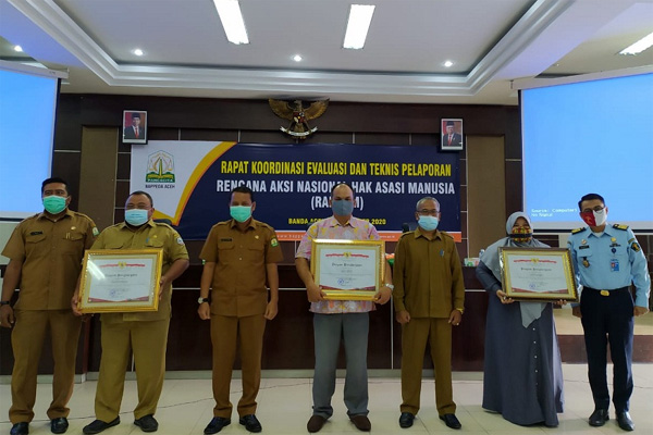 Hari ini juga. Dalam agenda Rakor Evaluasi dan Teknis Pelaporan Rencana Aksi Nasional Hak Asasi Manusia (Ranham) di Aula Bappeda Aceh. Kabupaten Aceh Tamiang juga menerima piagam penghargaan sebagai Kabupaten Peduli HAM.