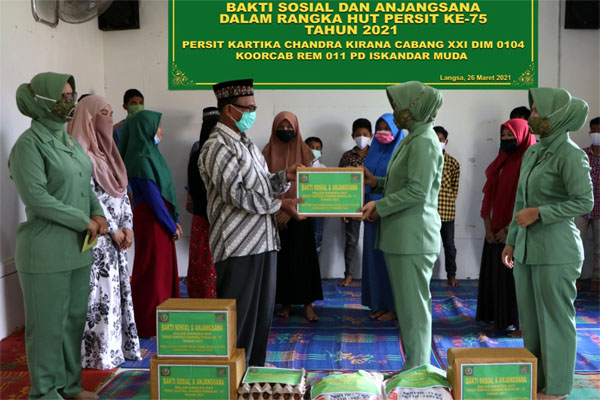 halaman7.com – Langsa: Persit Kartika Chandra Kirana Kodim Aceh Timur melaksanakan bakti sosial dan anjangsana ke rumah warakawuri, istri dan anak anggota yang sakit serta panti asuhan seputaran Kota Langsa, Senin 5 April 2021.