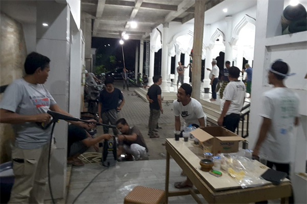 halaman7.com Banten: Jelang masuknya bulan suci Ramadhan. Sejumlah anak muda asal Aceh yang menetap di Cikupa, Tangerang, Banten, Senin 5 April 2021 malam melakukan gotong royong. Mereka membersihkan masjid dan halamanya.