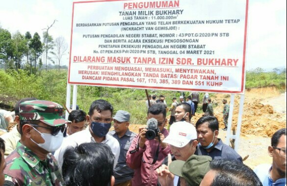 “Saat ini, Forkompinda Aceh Tamiang akan terus berusaha membantu menyelesai permasalahan tersebut. Dengan membentuk tim yang bekerja dan berkoordinasi dengan pihak terkait. Sehingga permasalahan bisa cepat seleai, tidak menimbulkan konflik yang bekepanjangan,” ucap Dandim saat meninjau Lokasi Objek Eksekusi PN Stabat di Dusun Adil Makmur II Desa Tenggulun, Kecamatan Tenggulun bersama Forkopimda, Selasa 6 April 2021.