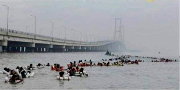 Heboh Pemudik Berenang di Lautan, Karena Jembatan Suramadu Ditutup