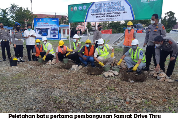 halaman7.com – Banda Aceh: Aceh segera memiliki sistem pelayanan pengurusan dokumen kendaraan bermotor yang efisien. Hal tersebut ditandai dengan peletakan batu pertama pembangunan Samsat Drive Thru, Jumat 3 Desember 2021 di Mako Ditlantas, Lamteumen, Banda Aceh.