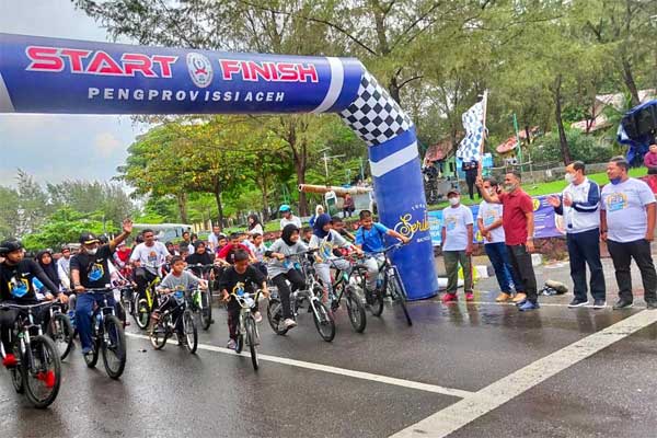Saat membuka funbike dengan tema “Kayuhan Pesona Sabang” yang diselenggarakan Dinas Pemuda dan Olahraga (Dispora) di Taman Wisata Sabang Fair, Minggu 12 Desember 2021, walikota menambahkan, meskipun dilaksanakan secara terbatas karena masih dalam suasana pandemi, antusias masyarakat sangat luar biasa.