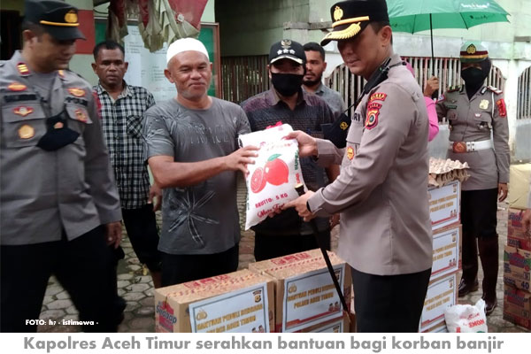 “Dalam peninjauan itu, Kapolres Aceh Timur juga menyalurkan bantuan sosial berupa sembako untuk masyarakat yang terdampak banjir,” kata Kabid Humas.