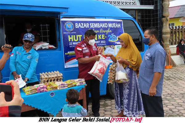 halaman7.com – Langsa: Badan Narkotika Nasional (BNN) Kota Langsa gelar bakti sosial. Gotong royong bersih-bersih masjid dan bazar Sembako murah di Gampong Alue Merbau, Langsa Timur, Kota Langsa Jumat 18 Maret 2022.