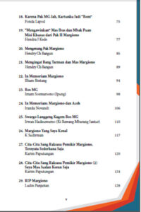 Buku yang berjudul ‘Extraordinary Margiono: Wartawan Cerdik & Dalang Nyentrik’ [Kumpulan Tulisan Mengenang Margiono 1960-2022] di isi oleh 54 wartawan senior seluruh Indonesia dalam 56 tulisan.