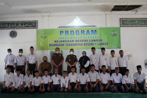 Hadir dalam kegiatan ini Kepala Sekolah MTsN 1 Langsa, Hj Cut Nurlisma SPd, dewan guru , Tim JMS Kejari Langsa dan perwakilan kedua sekolah.