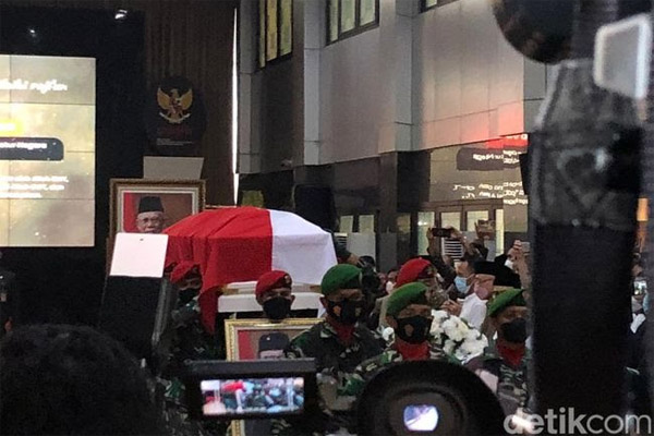 “Jenazah almarhum akan saya berangkatkan ke tempat pemakamannya di TMP Kalibata, untuk dimakamkan secara militer,” sambung Mahfud.