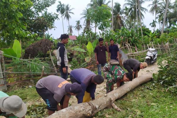 Pasca kejadian, Babinsa Koramil Peudawa, Kodim Aceh Timur, Serda Suyanto bersama dengan warga setempat melaksanakan gotong royong merapikan dan membenahi pohon tumbang tersebut.
