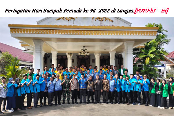halaman7.com – Langsa: Upacara peringatan Hari Sumpah Pemuda (HSP) ke 94 – 2022 berlangsung khidmat. Diikuti unsur Forkompimda, Pengurus DPD II KNPI Kota Langsa serta berbagai unsur kepemudaan yang digelar di halaman Pendopo Walikota Langsa, Jumat 28 Oktober 2022.