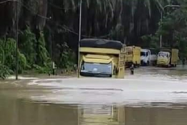 Transportasi darat terputus akibat banjir di Aceh Tamiang.[FOTO: h7 - ist]