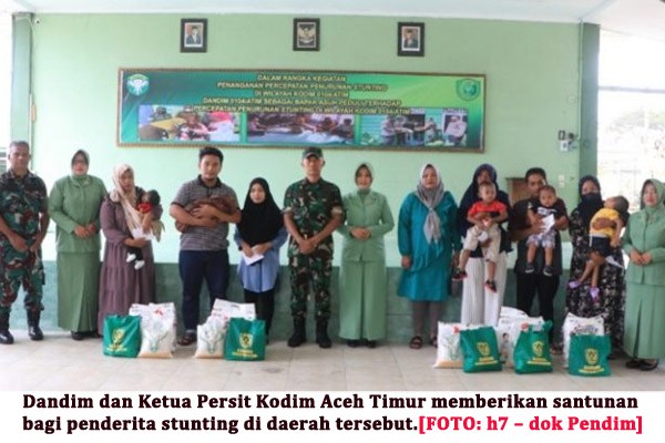 halaman7.com – Langsa: Sebagai bentuk Komitmen, kepedulian dan dukungan Tentara Nasional Indonesia Angkatan Darat (TNI AD) dalam penanganan masalah stunting di Kota Langsa, Komandan Kodim (Dandim) Aceh Timur, Letkol Inf Agus Al Fauzi, didampingi Ketua Persit Nita Agus Al Fauzi, memberikan sembako kepada anak-anak penderita stunting.
