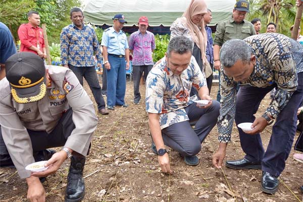 Pj Walikota bersama Kapolres Sabang melakukan penanaman kedelai.[FOTO: h7 - dok humas]