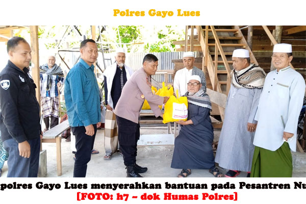 Sebagai langkah awal, Polres Gayo Lues memberikan bantuan kemanusiaan untuk Pesantren Nurul Yakin di Kampung Rerebe, Kecamatan Dabun Gelang. Bantuan tersebut di serahkan Kapolres, AKBP Efrianza SIK diwakilkan Kasat Reskrim, Iptu Muhammad Abidinsyah dan Kabag SDM pada Abuya di depan halaman pesantren.