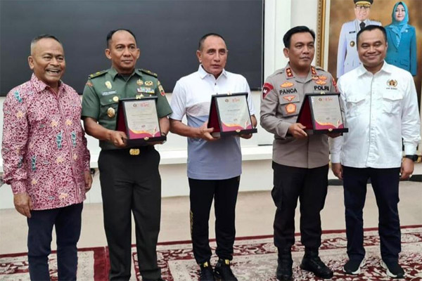 halaman7.com – Medan: Ketua Umum Persatuan Wartawan Indonesia (PWI) Pusat, Atal S Depari selaku Penanggung Jawab Hari Pers Nasional (HPN 2023) memberikan penghargaan untuk Gubernur Sumatera Utara (Gubsu), Kapoldasu, dan Pangdam 1/BB. Serta seluruh jajaran yang telah memberikan kontribusi nyata sehingga HPN 2023 sukses.