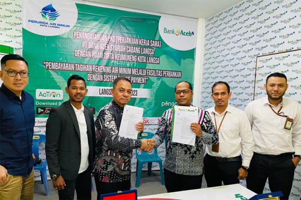 halaman7.com – Langsa: Perusahaan Umum Daerah (Perumda) Air Minum Tirta Keumuneng Langsa dan Bank Aceh Syariah (BAS) Cabang Langsa jalin kerjasama. Tentang pembayaran tagihan rekening air minum melalui fasilitas perbankan. Dengan sistem online payment.