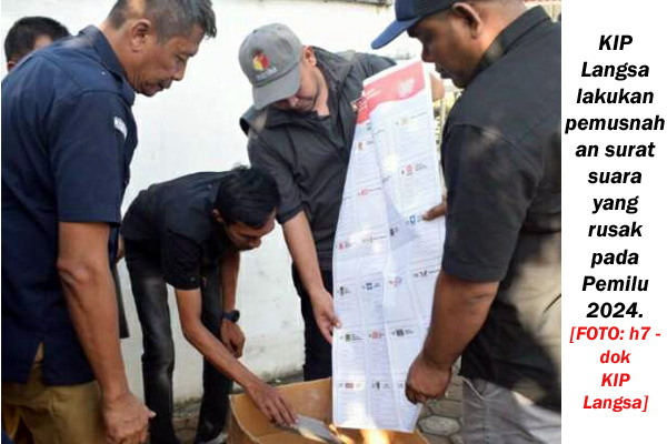 Ketua KIP Kota Langsa, Ridwan ST mengatakan  pemusnahan kelebihan surat suara Pemilu 2024 sesuai berita acara No. 84/PP.08.1-BA/1174/2024.