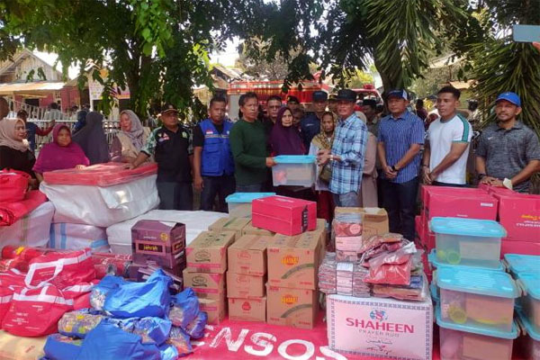 Adapun barang yang diserahkan kepada korban kebakaran diantaranya minyak Goreng 36 liter, roti 144 bungkus, kecap 36 botol, ikan kaleng 360 kaleng, sambal 96 botol, daster 15 pcs, kain sarung 30 pcs, mukena 15 set, sajadah 30 lembar, jilbab 15 pcs, kain panjang 30 lembar.