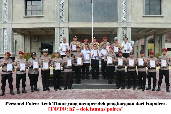 22 Anggota Polres Aceh Timur Dapat Penghargaan