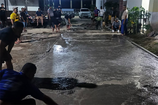 Dengan semangat gotong royong dan berswadaya, mereka berhasil membuat jalan kawasan pemukiman mereka yang selama ini rusak membaik dengan dilakukan pengecoran semen.