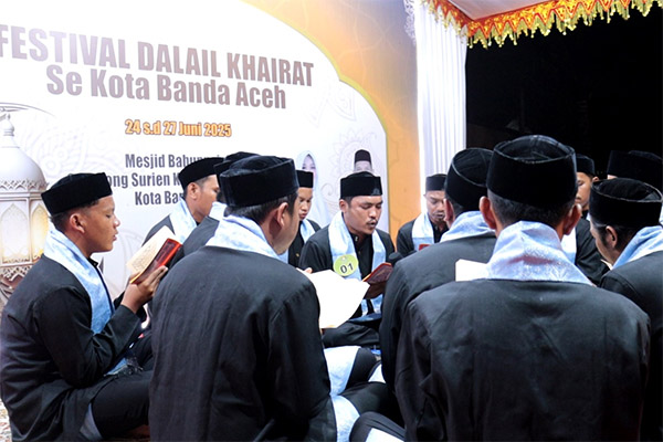 halaman7.com – Banda Aceh: Iringan Shalawat Badar seluruh tamu undangan serta penampilan Rapai Geleng yang disuguhkan Sanggar Cut Nyak Dhien warnai pembukaan Festival Dalail Khairat (FDK) se kota Banda Aceh yang digelar di Masjid Babunnajah Gampong Surien, Kecamatan Meuraxa, Banda Aceh, Selasa 24 Juni 2025, malam.