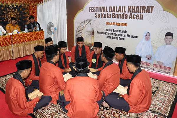 halaman7.com – Banda Aceh: Tiga peserta Dalail Khairat tampil pada malam ketiga Festival Dalail Khairat (FDK) se Kota Banda Aceh yang diselenggarakan di Masjid Babunnajah, Gampong Surien, Kecamatan Meuraxa, Banda Aceh, Kamis 26 Juni 2025, malam.