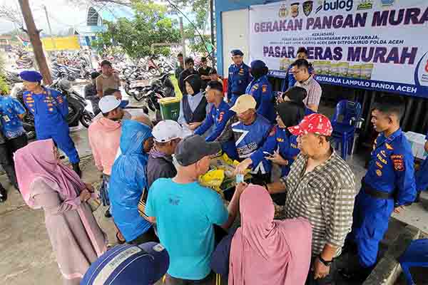 “Polda Aceh menyalurkan beras murah sebanyak 1,2 ton kepada masyarakat, dengan harga jual sebesar Rp60 ribu per lima kilogram. Ini adalah bagian dari upaya Polri untuk membantu masyarakat. Mendapatkan akses terhadap bahan pangan dengan harga yang terjangkau,” ujar Dirpolairud Polda Aceh, Kombes Pol Wahyu Prihatmaka.