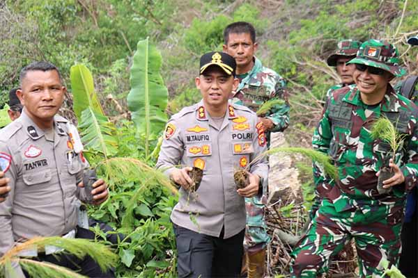 halaman7.com – Aceh Tengah: Polres Aceh Tengah yang dipimpin Kapolres Aceh Tengah, AKBP M Taufiq menanam 1.500 bibit pohon pinus di Desa Nosar, Kecamatan Bintang, Kabupaten Aceh Tengah, Rabu 1 Oktober 2025.