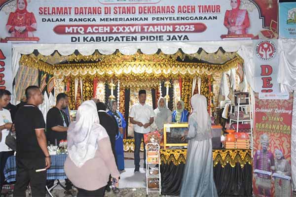 halaman7.com – Pidie Jaya: Stand Dewan Kerajinan Nasional Daerah (Dekranasda) Kabupaten Aceh Timur ikut memeriahkan arena pameran Musabaqah Tilawatil Quran (MTQ) XXXVI Tingkat Provinsi Aceh yang dipusatkan di Kabupaten Pidie Jaya.