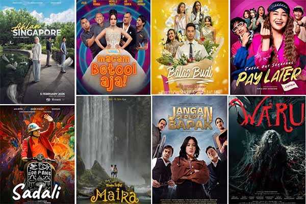 BERBAGAI genre film Indonesia, mulai dari komedi, drama, romantic hingga horor akan rilis pertama sekali pada Fabruari 2026. Setidaknya ada 8 film yang akan rilis pada 5 dan 8 Februari 2026.