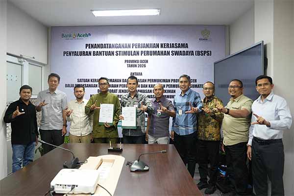 Penunjukan ini ditandai dengan Penandatanganan Perjanjian Kerja Sama tentang Penyaluran Bantuan Stimulan Perumahan Swadaya (BSPS) Provinsi Aceh 2026, pada Kamis 12 Maret 2026 di Bank Aceh Kantor Pusat.
