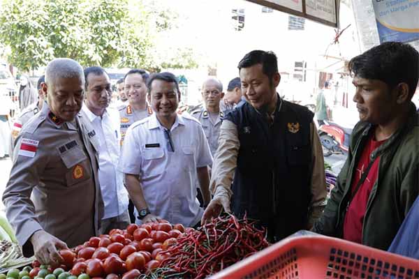 Wakapolda Aceh saat meninjau pasar murah.[FOTO: h7 - dok humas polda]