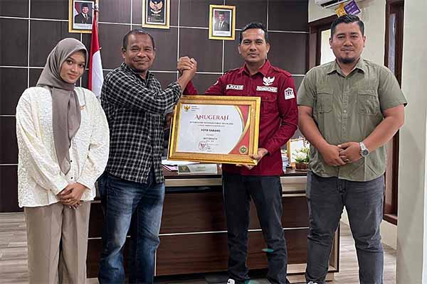 Penghargaan tersebut diserahkan secara resmi Komisioner Bidang Edukuasi, Soasialisasi dan Advokasi Komisi Informasi Aceh (KIA), M Nasir dan Wakil Ketua KIA, Sabri kepada Pemerintah Kota Sabang yang diwakili Kepala Dinas Komunikasi, Informatika, Statistik dan Persandian Kota Sabang, Agus Halim, Kamis 2 April 2026, di Kantor Komisi Informasi Aceh.