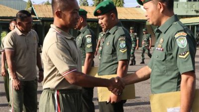 halaman7.com – Langsa: Dandim Aceh Timur, Letkol Inf Agus Al Fauzi, pimpin upacara korp raport pindah…
